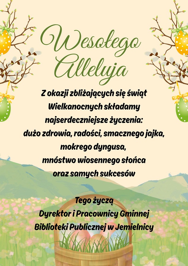 W dniach 2.04 (Wielki Czwartek) i 3.04 (Wielki Piątek) ze względu na urlopy zmianie ulegają godziny pracy biblioteki gminnej